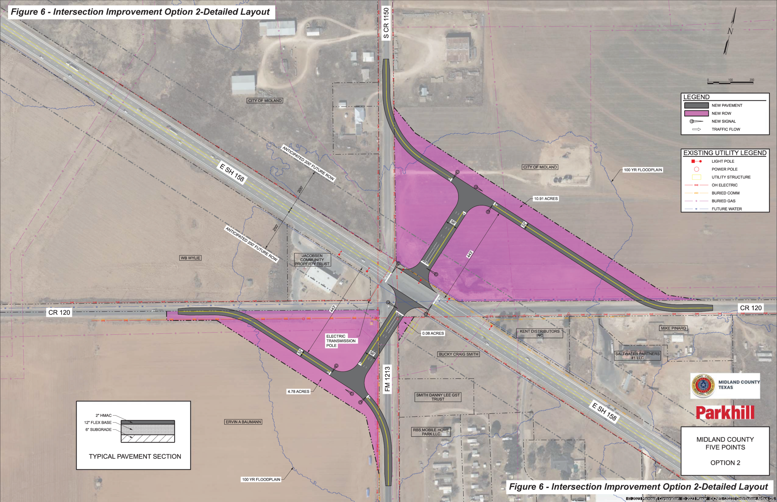 In the interim, MOTRAN has also been supporting improvements to the 5 points intersection just south of Midland on SH 158. Below is a proposed schematic for potential improvements being considered currently by TXDOT.